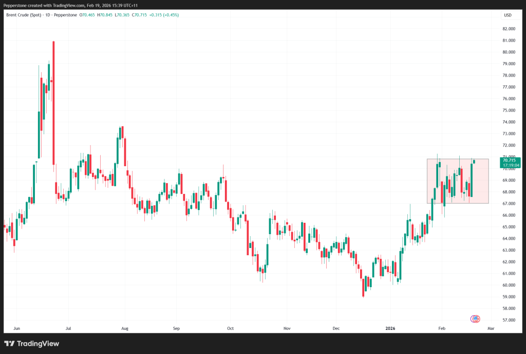 Về mặt kỹ thuật, dầu Brent đang cố gắng thoát khỏi vùng giao dịch kéo dài nhiều tháng. Nếu giá duy trì vững chắc trên 71 USD/thùng, điều này có thể mở ra một giai đoạn biến động mạnh hơn, đặc biệt nếu các tiêu đề tin tức tiếp tục leo thang.