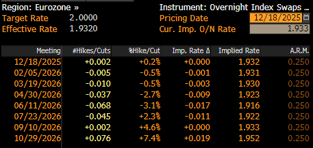 Như đã đề cập, và đúng như những gì thị trường tiền tệ đã hoàn toàn phản ánh trước đó, Hội đồng Thống đốc đã quyết định giữ nguyên toàn bộ các thiết lập chính sách tại cuộc họp cuối cùng của năm. Theo đó, lãi suất tiền gửi vẫn được duy trì ở mức 2,00%. Quyết định này kéo dài trạng thái tạm dừng chính sách đã được áp dụng kể từ cuộc họp tháng Sáu, đồng thời góp phần củng cố nhận định rằng chu kỳ nới lỏng đã kết thúc, với mức 2,00% được xem là lãi suất cuối cùng (terminal rate).