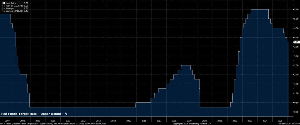 Đúng như dự kiến – và cũng đã được thị trường tiền tệ định giá đầy đủ trước khi quyết định được đưa ra – FOMC đã quyết định giữ nguyên chính sách tại cuộc họp tháng Một, duy trì phạm vi mục tiêu lãi suất quỹ liên bang ở mức 3,50% – 3,75%. Quyết định này nên được xem như một “tạm dừng” trong chu kỳ nới lỏng, sau khi Ủy ban đã cắt giảm tổng cộng 75 điểm cơ bản trong bốn tháng cuối năm ngoái.