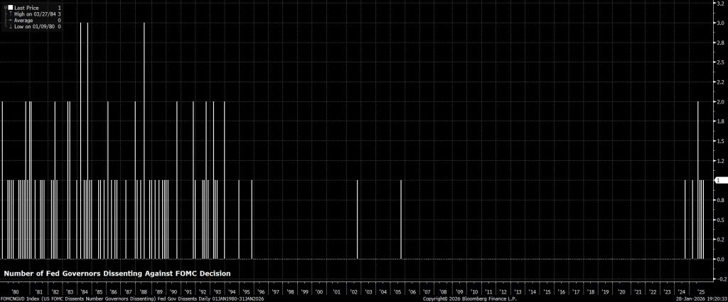 Ủy ban Thị trường Mở Liên bang (FOMC) đã giữ nguyên lãi suất tại cuộc họp tháng Một, bất chấp có tới hai phiếu phản đối, cho thấy Ủy ban đang chuyển sang cách tiếp cận “chờ và xem” trong bối cảnh thị trường lao động ổn định trở lại.