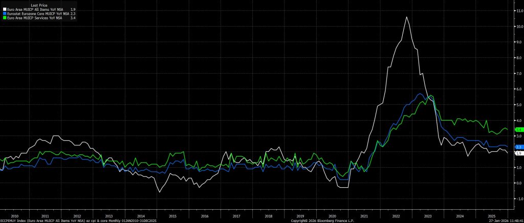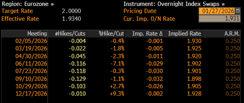Thành thật mà nói, cuộc họp của ECB trong tháng Một này có thể sẽ khá tẻ nhạt, khi không có thay đổi chính sách hay điều chỉnh định hướng nào được dự kiến. Tuy nhiên, điều này sẽ củng cố quan điểm cơ bản của tôi rằng chu kỳ nới lỏng đã kết thúc, và ECB sẽ giữ nguyên mức lãi suất tiền gửi ở mức 2,00%—mức cuối cùng—trong thời gian tới. Mặc dù động thái tiếp theo nhiều khả năng sẽ là một đợt tăng lãi suất, nhưng đó là câu chuyện của năm sau, và có lẽ phải đến tận cuối năm 2027 mới diễn ra.