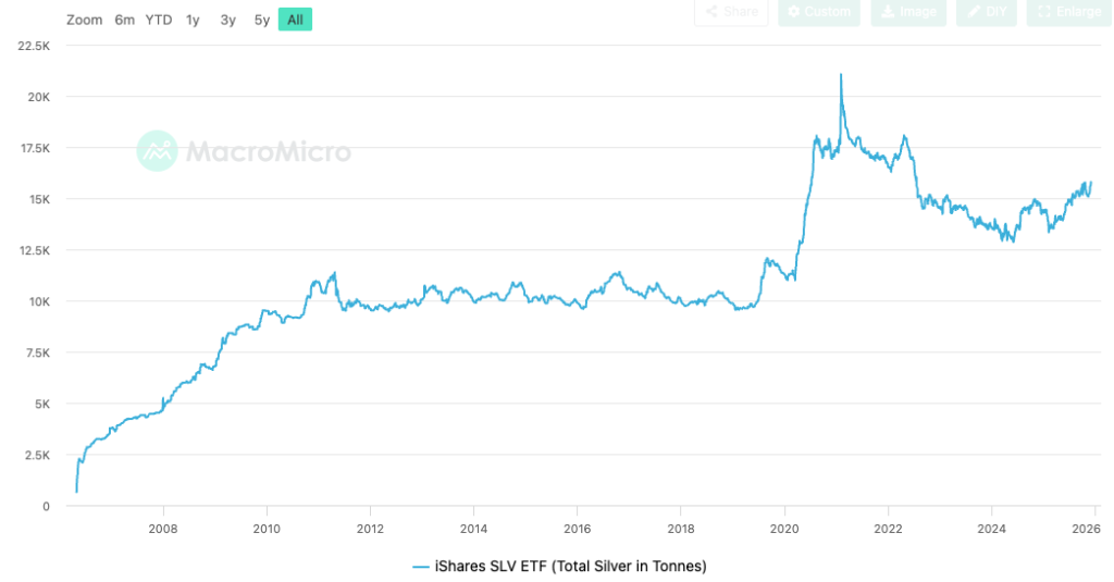 Dòng vốn đổ vào mạnh mẽ cũng tiếp tục thúc đẩy giá tăng. Tính đến cuối tháng 11, lượng nắm giữ của iShares Silver Trust, quỹ ETF bạc lớn nhất thế giới, đã vượt 15.600 tấn, đạt mức cao nhất kể từ tháng 7/2022.