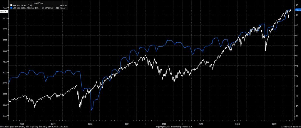 Trong một môi trường mà Fed đang nói “hãy để nền kinh tế chạy nóng”, còn chính quyền Trump thì nói “hãy chạy nóng hơn nữa”, việc duy trì quan điểm bi quan mang tính cấu trúc đối với các tài sản rủi ro trong bất kỳ khoảng thời gian đáng kể nào là điều khá khó khăn. Trên thực tế, xét trên nhiều khía cạnh, môi trường tổng thể hiện tại vẫn mang màu sắc “Goldilocks”, với sự tồn tại của cả “Fed put” và “Trump put” giúp neo giữ tâm lý thị trường, đồng thời tạo ra lực hỗ trợ mạnh mẽ cho một bối cảnh nền tảng vốn đã rất vững chắc.