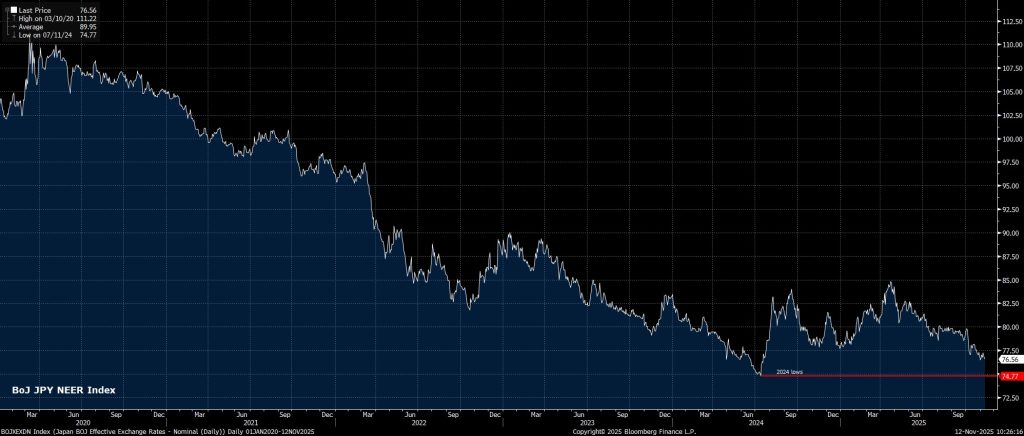 Hiện tại, chỉ số JPY NEER của BoJ đang ở mức thấp nhất kể từ tháng 7 năm ngoái, thời điểm vòng can thiệp gần nhất (“yentervention”) diễn ra.