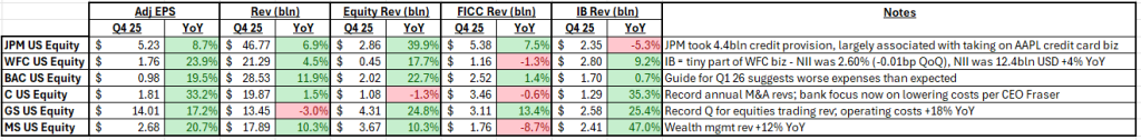 Nhìn chung, kết quả kinh doanh quý IV/2025 làm nổi bật khả năng chống chịu vững chắc của ngành ngân hàng Mỹ. Lợi nhuận mạnh mẽ, dòng tiền trả lại cổ đông đáng kể, và các ban lãnh đạo đang ở thế sẵn sàng tận dụng các cơ hội trong năm 2026.