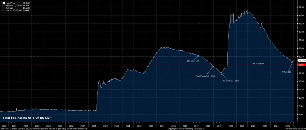 Việc xem xét lại mức lãi suất trung lập của Cục Dự trữ Liên bang (Fed) qua lịch sử và các động thái liên quan đến bảng cân đối kế toán đặt ra thách thức đối với luận điểm cho rằng lãi suất cuối cùng cần cao hơn, đồng thời ủng hộ một chu kỳ nới lỏng kéo dài và sâu rộng hơn—từ đó tạo ra bối cảnh thuận lợi hơn cho tài sản rủi ro so với mức thị trường hiện đang định giá.