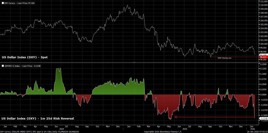 Ngoài những chất xúc tác tích cực nói trên, đợt suy yếu đáng kể gần đây của đồng USD đang tạo thêm một lực đẩy thuận lợi cho vàng. Sự suy yếu của đồng bạc xanh này phần lớn phản ánh xu hướng “bán tháo tài sản Mỹ” (‘sell America’ trade) đang ngày càng gia tăng mạnh mẽ trên thị trường ngoại hối gần đây—xu hướng này, đến lượt nó, cho thấy quan điểm tiêu cực mà các nhà tham gia thị trường, xét tổng thể, vẫn tiếp tục dành cho chiến lược đàm phán phi chính thống “leo thang để giảm leo thang” của Tổng thống Trump, cùng với những lời đe dọa áp thuế liên tục thay đổi, lúc thì đưa ra, lúc lại rút lại. Rủi ro địa chính trị gia tăng—chủ yếu xoay quanh các diễn biến tại Trung Đông—cũng đang góp phần thúc đẩy thêm nhu cầu tìm nơi trú ẩn an toàn đối với vàng và các kim loại nói chung.